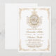 Elegant guld- och krämfärgad bröllopsinbjudan | Vintage utsmyckad blomdesign