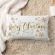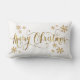 Elegant Guld och God jul Pillow designad med guld färgad på vit bakgrund. Texten innehåller: God jul. Dekorera ditt hem den här Julhelgen med eleganten guld och vit lumbalkudde med guld färgad snöflingor.
