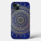 Den fantastiska, cirkulära blommigten mandala-designens telefonväska i ljusblå guld på djup blå bakgrund, inspirerad av mehndi henna body art. Behåll den här meditativa konsten med dig varje dag på din mobil.