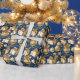 Denna lyxiga pappra julomslutning har en sömlös mönster av guld-prydnadsföremål, vackert inlindat presenter och skuggande stjärnor mot en rik blå bakgrund. Den här designen är perfekt för att du har lagt till lite elegans till din helgdag, ge, och ger en fin och sofistikerad charm till alla presenter. Perfekten för dem som kärlek klassiskt julklapp färg med en modern tvist kommer att få ert presenter att framträda under träd.
