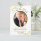 De här vackra korten är ett underbart sätt att låta dina vänner och familj veta att spara datumet för ditt kommande bröllop. De har en guld och vit design med ditt foto i en ovalformad ram omgiven av guldfaux foil snöre frills och finare skriptbokstäver med namn, datum och plats för bröllop. På baksidan finns en söt bild med plats för en anteckning som kan innehålla en webbplats där dina gäster kan gå och läsa mer.