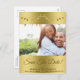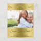 Ge är dina gäster och tidigt uppe så att de kan rensa sina kalendrar och spara datumet för bröllop med den här Guld Faux Foil-Eleganten Spara vykortet för datum. Designad så att du kan ladda upp ditt eget foto. Anpassade så att du bara kan ange högerna. Designat som en del av vår guldfetter Elegant bröllop Suite har den en enkel utformning, men elegant, med Guld bakgrund och en guld faux foil blommigt gräns.