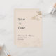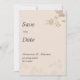 De här inbjudningarna till bröllop spara datum är mycket designade med romantiska blommigtar och har en fin blandning av guld, och persikofärgade toner. Elegantens skript och mjuka vattenfärgsblommor lägger till tidsgränsvärde. Perfekt för ett drömt, sofistikerat firande. Tryckt på premiumkardbeståndet för en lyxfri beröring. Ange tonen för din oförglömliga dag med förfinad skönhet.