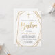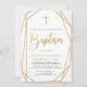 Modern, elegant pojke dop inbjudan har handskriven ''dop'' i guldbokstäver, guld ram, guld kors på vit bakgrund. Anpassa med detaljer i trendiga versaler.