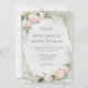 Inbjudan gäster till firande med den här inbjudan till bröllopsinbjudan till blommigten i guld ram. Designad med moderna guld-geometriska ram, mjuka vattenfärgsgröna och blommigtar för rosa är det perfekten för romantiska, trädgårdsnära eller rustiska bröllop teman.