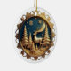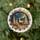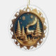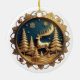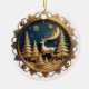 Det här anpassadet runt keramiska rendekorationer har en elegant White & guld färgad ram som omger en guld-festlig utformning. Bakgrunden visar en serene julsnowy nattscen, med ett mörk blått himmel fyllt med snöflingor. Nedan, en bild av ett vintersnölandskap med träd och snö. Guld hjort med antenner tillför på ett skickligt sätt en aning magi och helgdag i Julafton. Den dubbla-sidiga designen ser till att oavsett hur dekoratet svänger, så ser den alltid snygg och komplett ut. 🦌 🎄