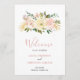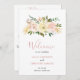 Romantiskt bröllopsprogram av blommigt med vattenfärgade blommor i rosa, dammig ro, champagne och elfenben tillsammans med guld accent delara. "Välkomna till bröllop" tillsammans med namn, datum och plats. Baksidan har din ceremoni, bröllopsfest och tack. Dessa elegant bröllop-program är perfekter för vår eller sommaren bröllop.
