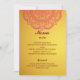 Ett vackert bröllop-menykort i guld med röd typografi och rosa mandala. Enkel och elegant med vackert färg. Del av Elegant guld rosa paisley Indian Hindu-samlingen https://www.zazzle.com/collections/elegant_simple_gold_pink_paisley_indian_2-119951578218948434?rf=238642071267668202 Anmärkning: Folidetaljer simuleras i teckningen. Ingen faktisk folie kommer att användas vid skapar av denna produkt.