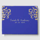 En elegant rik royal Blue och guld dammkors bröllopsgäst bok. Den här gästen bok i bröllop ingår i en bröllopsinbjudan.