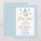 Elegant Guld Script Cute Blue Dinosaur Baby Shower Inbjudningar