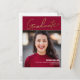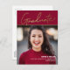 Meddela din student-milstolpe med stil med hjälp av det här Elegant Guld-skriptet Red Photo Universiteten Student annnouncement Postcard. Anpassningsbar-designad för att fira detta betydelsefulla tillfälle har vykortet ett djärvt rött och guld färg som kan skräddarsys för att matcha färgerna i din student alma-fråga. Med det här vykortet inbjudan till ställe kan du få ett stolt foto av student front och center. Anpassa det ytterligare till klassåret student namn och namn i Universiteten eller högskolan. Det moderna skriptteckensnittet lägger till en chic- och elegant-beröring som säkert imponerar på mottagarna. På baksidan av vykortet finns det gott om utrymme för att inkludera ett hjärtligt gratulationsbudskap, din returadress och detaljer om student skolprogrammet, oavsett om det är en Bachelor-examen, Hedersexamen eller någon annan julklad. Detta vykort i studenten är inte bara en vacker keepy utan också ett enkelt sätt att sprida nyheten om ert student-resultat till familj och vänner långt och brett. Dess sofistikerade utformning ser till att det här meddelandet kommer att tas emot som mer än bara ett meddelande - det är en firande av hårt arbete och framgång. Om du vill ha personliga beröringspunkter eller hjälp med din design, tveka inte att komma i kontakt på info@lddesignloft.com. upphetsningen och pridet med ett så anmärkningsvärt uttalande som studenten har åstadkommit.