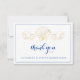 Den här elegantens kustdesign har ett snyggt guld-årskal och vågar med ett blått gräns, personlig med namn. Vänd sida innehåller anpassningsbarnas personliga meddelande. Perfekt för strand, sommar eller nautiskt tema bröllop. Design ©Rosalind Moore, Cherry Lane Designs.