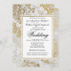 Elegant och svanky faux tryckt guld, silver, vit och grått blommigt, bröllopsinbjudningar. Denna klassiska och sofistikerade utformning är perfekt för det trendig och det snyggt som gifter sig. Anpassa med ditt eget meddelande på framsidan och en anpassad inledande monogram på baksidan. All fotoutskriftsdesign.