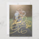 Chicen Faux calligraphy-skript i guld med enkel elegant överlägger text personlig bröllop-tack för att du har två anpassningsbar-foton, textmallar och namnteckning.