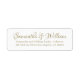 Elegant faux guld och white anpassningsbar-skript kalligraphy namn chic bröllop returetiketter. Adress linjer har tillräckligt med utrymme för långa efternamn och adress