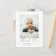 Guld-fototackkort för Baby-fototackkort i elegant. Baksidan innehåller ett meddelande från familjen och ett andra foto. Klicka på knappen Redigera om du vill anpassa designen med foton och detaljer.