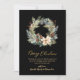 Modern Elegant Black and Guld Calligraphy Script Wand Non Photo Julkort. Det här fina, enkla, minimalistiska Helgdagskortet för jul har en vattenfärgad grön andedräkt och en text "God jul" hälsning som är skriven i en fin teckenstil i guld på svart. På andra sidan guldfärgad glitter snö eller mousserande guld konetti mot svart bakgrund. Den här julklappen är ett underbart sätt att påminna nära och kära om att du tänker på dem den här Julhelgen.