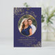Elegant Guld Snöre och Oval Photo Navy Blue Bröllo Spara Datumet