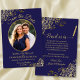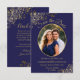 De här vackra korten är ett underbart sätt att låta dina vänner och familj veta att spara datumet för ditt kommande bröllop. De har en marin blå och guld-design med ditt foto i en ovalformad ram omgiven av guldfaux foil snöre frills och finare skriptbokstäver med namn, datum och plats för bröllop. På baksidan finns en söt bild med plats för en anteckning som kan innehålla en webbplats där dina gäster kan gå och läsa mer.