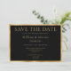 Elegant guld och svart sparar det platta kortet för femtioårsdagen Bröllop. Kortet har ett gyllene gräns i linje med temat och kan vara personlig med att inkludera dina evenemangsuppgifter.