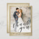 Elegant guld svart script bröllopsfoto tack vykort