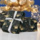 Elegant guld svartkonsthund deka-blommigt som omsluter papper.