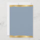 Trendigets bröllopsinbjudan innehåller en guld-faux-folie som slits kant överst och grund gräns på dammig blå bakgrund. Ord "bröllop" visas i kalligrafiskt skript. Anpassa den vita texten med namn på bruden och trimningen och med bröllop-informationen. Konstruktionen guld kant upprepas i motsatt riktning.