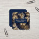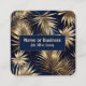 En elegant med tropiska löv av champagnefärgad flyter på en mörk blått bakgrund. All text är lätt att anpassade.