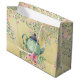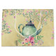 Blomstrar den gröna vattenfärgtekannan för eleganten med nätt rosor blommor, och gröntlöv på grenar som är kommande ut ur utloppsröret på ett härligt fauxguld, omkullkastar bakgrund.