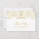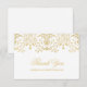 Elegant vintageinspirerade tackkort för bröllop med en utsmyckad dekorativ kantdesign med metallisk champagne-guldskimrande utseende och anpassad "Tack"- och monogramtext som kan anpassas. Platt kortformat.