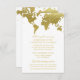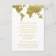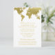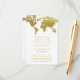 Bröllop-informationskortet har en världskarta över gräns. Elegant vit och faux guld foil färg.