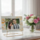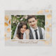 Elegant bröllskort med guldblad och foto tackkort.