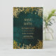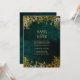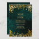 Elegant Guldblad Velvet Grön Spara Datum Bröllopsinbjudan. Denna vackra inbjudan har elegant gyllene typografi och gyllene blad på en sammetsgrön bakgrund. Du kan anpassa den genom att trycka på knappen (Personalisera). Om du vill anpassa den ytterligare, gå till alternativet (Klicka för att anpassa ytterligare).