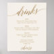 Denna eleganta guldbokstav elfenbensvita menykort för drycker är perfekt för ett enkelt bröllop. Den neutrala designen har en minimalistisk affisch dekorerad med romantisk och fantasifull falsk guldfolie-typografi. Anpassa kortet med drycker som finns tillgängliga på ditt bröllopsfirande.