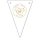 Enkla, eleganta, minimala, moderna vita bröllopsflaggor med monogram och guldtåg hjärta.