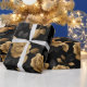 Elegant guldförstärkt ros svart blommönster presentpapper