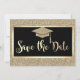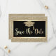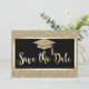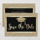 Elegant guldglittrande examensmössa på svart bakgrund.