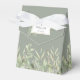 Elegant mjuk grönska blad bröllop gåva låda med känsliga akvarell blad på en salvia grön bakgrund ramar dina namn och speciella datum i modern typsnitt. Du kan anpassa med ditt eget tack meddelande under locket. Ett perfekt sätt att tacka dina gäster! Designad av Thisisnotme