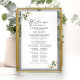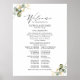 Elegant guldgrönska bröllopsprogram skylt