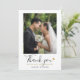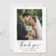 Ett chic tackkort för bröllopsfoto med ert bröllopsfoto, elegant svart och guld typografi och guldhjärta. Baksidan har ett matchande guldhjärta med elegant svart och guld typografi som kan anpassas med ert tackmeddelande. Designad av Thisisnotme©