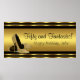 Extra stor svart och guld glitter höghaksskor kvinnas födelsedagsfest banner. Du kan anpassa denna eleganta guld höghakssko fest banner med ditt val av bakgrundsfärg, text i teckensnittsstil och färg som du väljer.