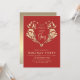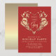 Modern, elegant, vacker röd Fred kärlek och glädje jul firande party inbjudan, med rustik gyllene hjärta form krans.