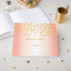 Elegant guld metallisk look konfetti på roséguld gästbok. Text redo att anpassas.
