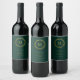 Elegant guldkrans smaragdgrönt monogram vinflaska etikett