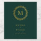 Modern och elegant förgylld bladkrans monogram, personliga smaragdgröna vinetiketter. Teckensnitt och färg kan anpassas.