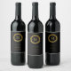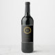Elegant guldkransmonogram svart vinflaska etikett