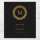 Modern och elegant gyllene bladkransmonogram, personliga vinetiketter. Bakgrundsfärg, som visas i svart, kan anpassas.