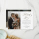 Detta moderna fotobröllop tack-kort har guldmanus tack, personligt meddelande och ett vertikalt foto på framsidan. Baksidan innehåller ett andra foto som är ett horisontellt foto som sträcker sig ända ut till kanterna. Klicka på redigera för att anpassa denna design.
