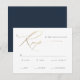 Detta eleganta guldmanus Navyblå bröllop RSVP-kort med guldpräglad et-tecken är chic och klassiskt. Perfekt för moderna klassiska bröllop, vintagebröllop och formella bröllop. Se alla matchande delar i kollektionen. Klicka på redigeringsknappen för att anpassa denna design.