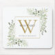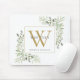 Elegant vattenfärg blommig grönska monogramnamn musmatta med en guldmonogram initial. Designad av Thisisnotme©